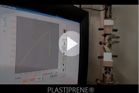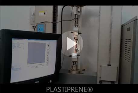 Realizado conforme a norma ISO 37 o ensaio de tensão por ruptura tem como objetivo medir a resistência do material quando submetido à determinadas cargas. Pode-se verificar se as deformações promovidas no material são uniformemente distribuídas em toda a sua extensão.